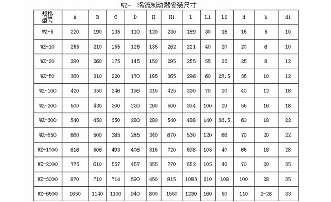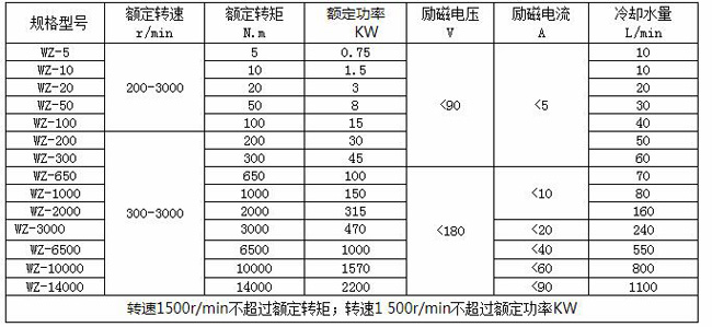 二、電渦流制動(dòng)器產(chǎn)品規(guī)格及主要技術(shù)參數(shù):